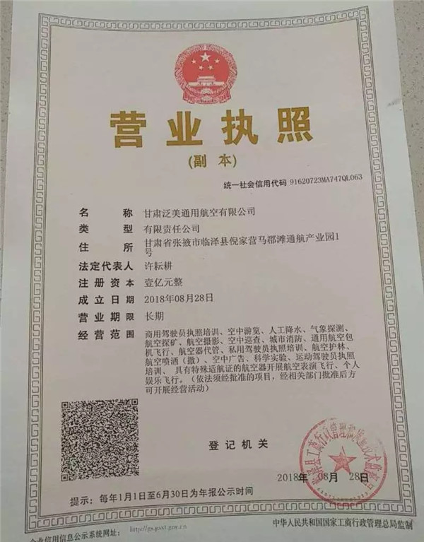 【集团新闻】喜讯:甘肃泛美通用航空有限公司注册成立
