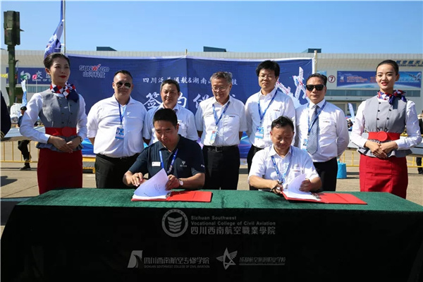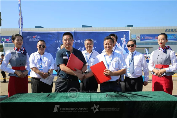 在签约仪式现场,四川泛美通用航空有限公司CEO许耘耕与湖南山河科技股份有限公司总经理邹湘伏代表双方签订战略合作协议,双方就航空器研发、制造、适航与销售方面达成共识。同时,双方将共同推进山河、派泊系列飞机在国内外通航领域差异化、细分化市场的密切合作,实现优势互补。