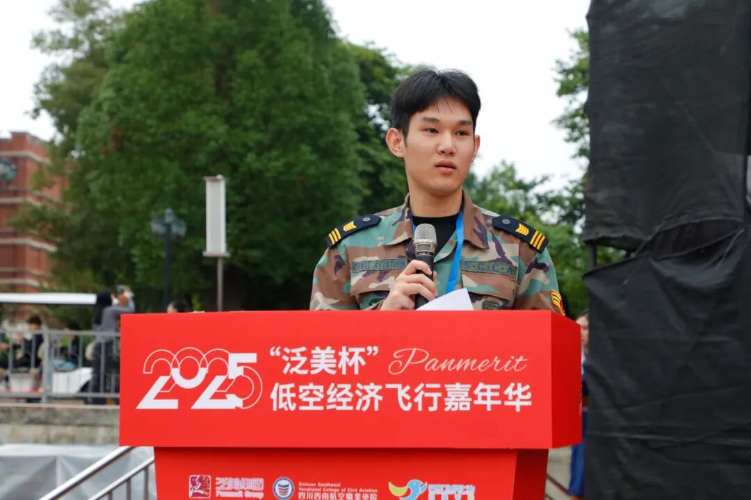 四川西南航空职业学院党委书记岳文喜教授为开幕致辞。他表示,本次嘉年华是一场融合地面竞技与听觉盛宴的创新盛会,更是展现低空经济活力、传递青春梦想的生动实践。学院始终坚持深耕低空领域,积极搭建“产教融合”育人平台,并鼓励参赛选手在接下来的低空联盟飞行赛中赛出水平、收获成长、以赛促学,把握低空经济发展机遇,贡献青春力量。
