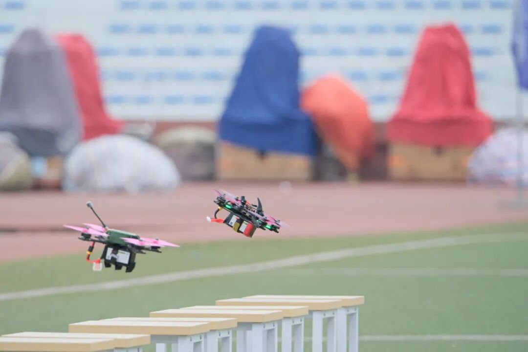 上午9:30,选手们在定制场地中进行3V3“空中足球”对抗,以精湛的操控技术实现攻防转换,现场气氛紧张热烈。同步进行的“穿越机竞速”赛场,无人机在低空赛道中高速穿行、急转翻飞,展现出参赛选手卓越的飞行控制能力,引来观众阵阵掌声。