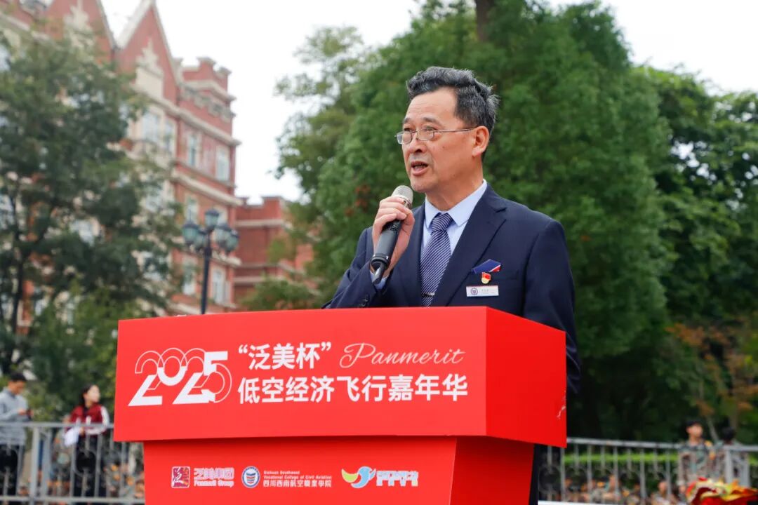 四川西南航空职业学院党委书记岳文喜教授为开幕致辞。他表示,本次嘉年华是一场融合地面竞技与听觉盛宴的创新盛会,更是展现低空经济活力、传递青春梦想的生动实践。学院始终坚持深耕低空领域,积极搭建“产教融合”育人平台,并鼓励参赛选手在接下来的低空联盟飞行赛中赛出水平、收获成长、以赛促学,把握低空经济发展机遇,贡献青春力量。