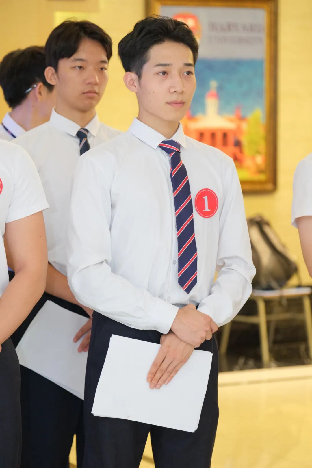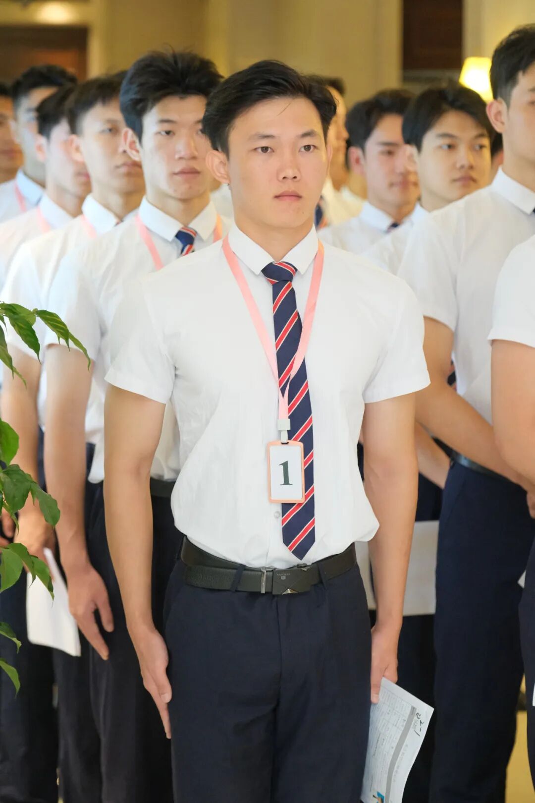 候场区,男生们西装笔挺,尽显干练与稳重;女生们则化着精致的妆容,盘起标准发髻,展现出准民航人应有的专业形象,眼中洋溢着满满的自信与为梦想冲刺前的沉静与专注。