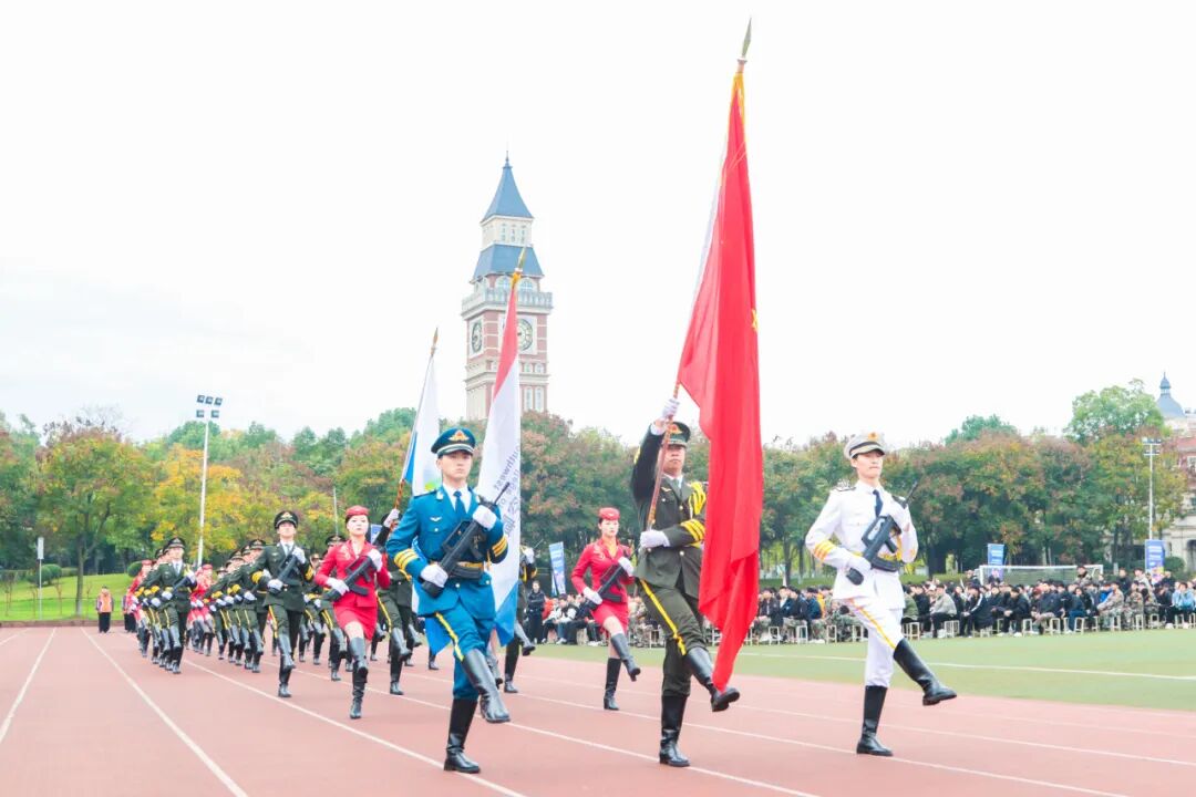 运动会的号角嘹亮吹响,国旗护卫队、凤凰女子仪仗队、裁判员代表队、校足球队、各学院代表队依次入场。步伐铿锵有力、精神昂扬振奋、口号整齐划一,瞬间点燃全场热情。