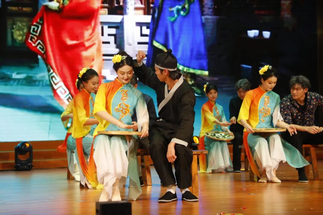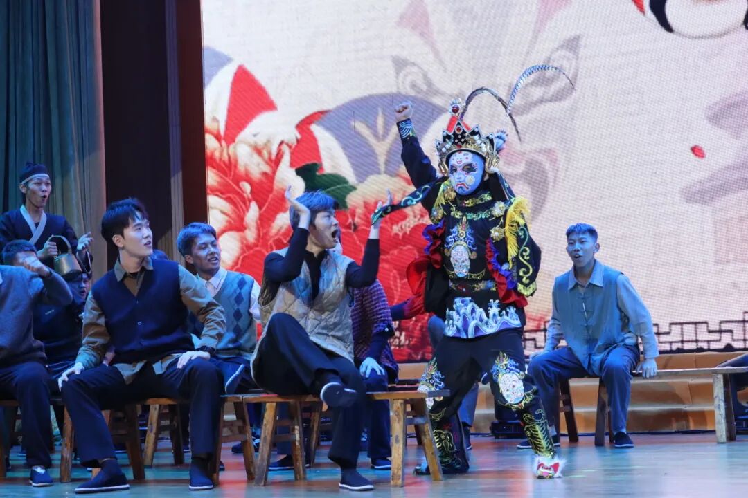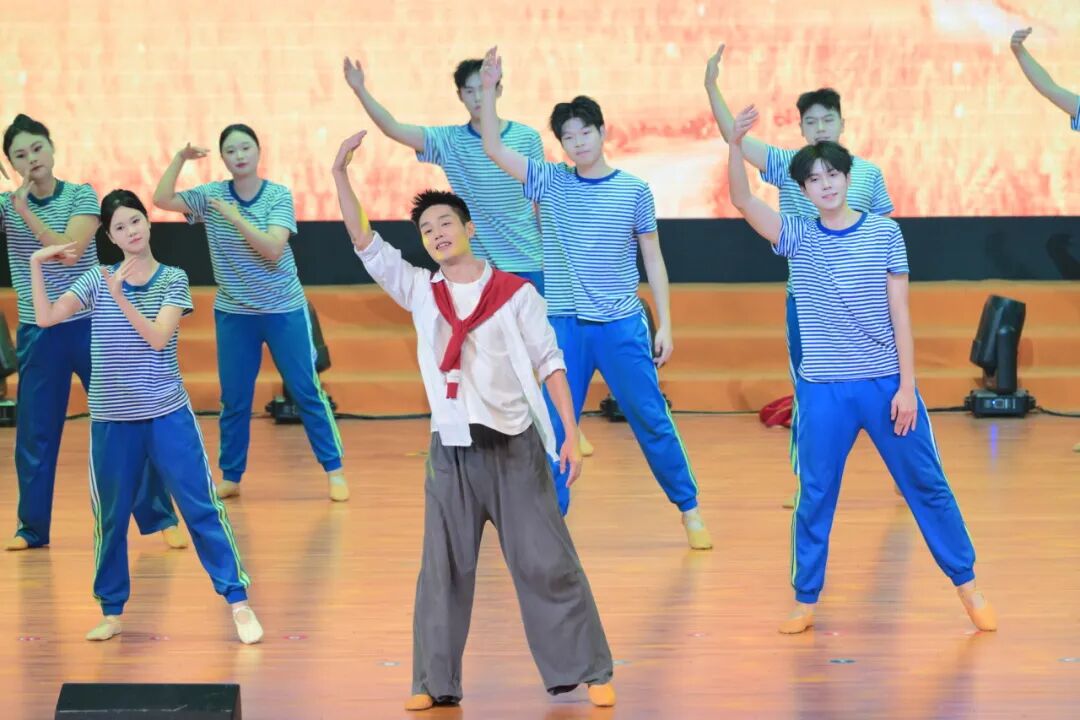 《鱼跃龙门》空中乘务学院指导老师:罗瑞烨 张越,“跳一跳,步步高”学子们的奋斗劲头被他们演绎得入木三分。包袱不断,笑声满场,仿佛所有烦恼都在欢腾中被一脚踢开。在酣畅的表演里,我们看见那份专属于青春的乐观与韧劲——纵身一跃,便是龙门。