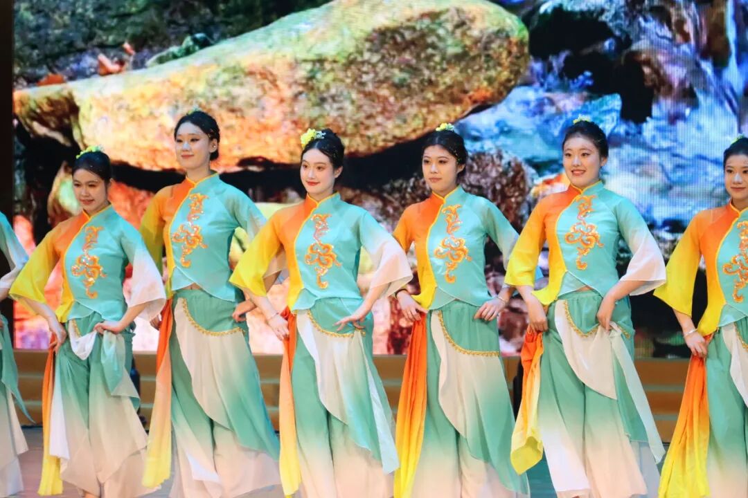《锦绣踏歌》空中乘务学院指导老师:晏腊 厉柠杉,裙裾旋开如盛世繁花,足尖起落似马蹄轻踏。舞者们以袖为笔,踏歌而行,旋身间流转着古韵今风。锦绣未央,踏歌不止,在翩跹舞姿中,跃动着时代脉搏与传承之光。