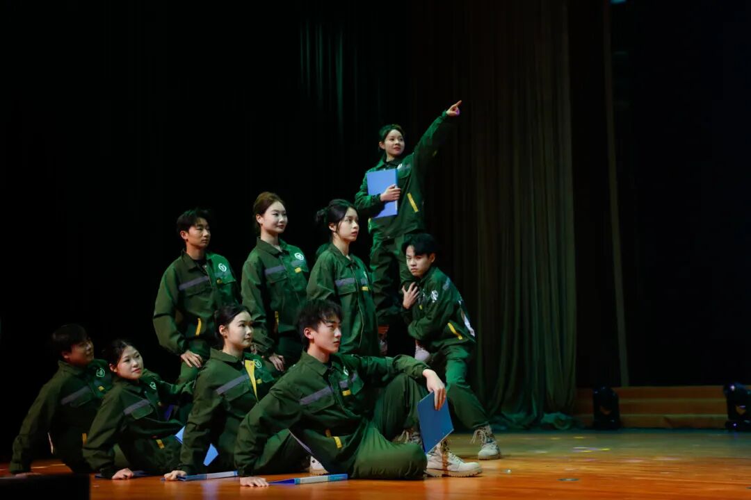《蓝天铸盾》空中乘务学院指导老师:王艳,万米高空的守护被搬上舞台。严谨的指令、默契的配合、沉着的神情,再现了客舱内化险为夷的紧急时刻。这是一场没有硝烟的“战斗”,更是西航学子专业精神与责任担当的铮铮誓言。