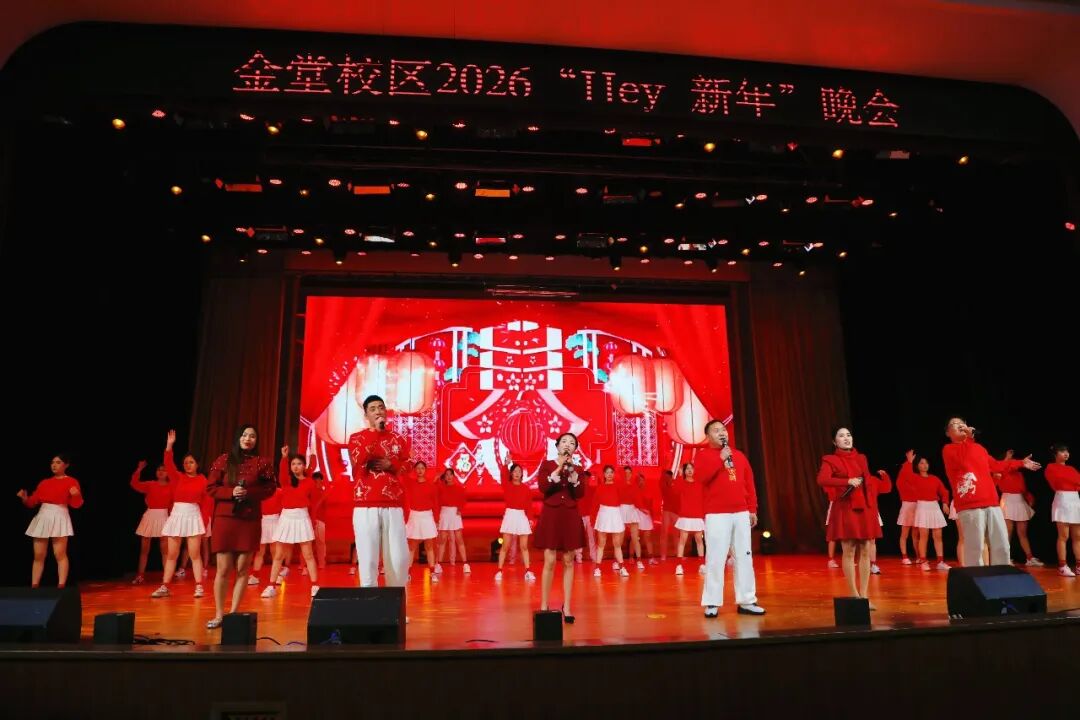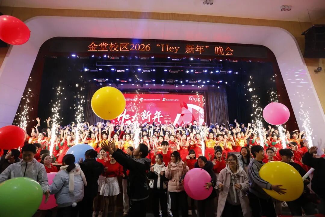 万众期待的抽奖环节,“拥抱”式抽奖将新年的喜悦与幸运传递至每个角落。不仅在主会场,教室里收看直播的同学们也同步欢呼、彼此祝福,实时共享这份温暖的高潮。难忘今宵,今宵难忘,悠扬歌声中晚会圆满落幕,而精彩仍在延续。2026,我们携手启航,共迎绚烂。