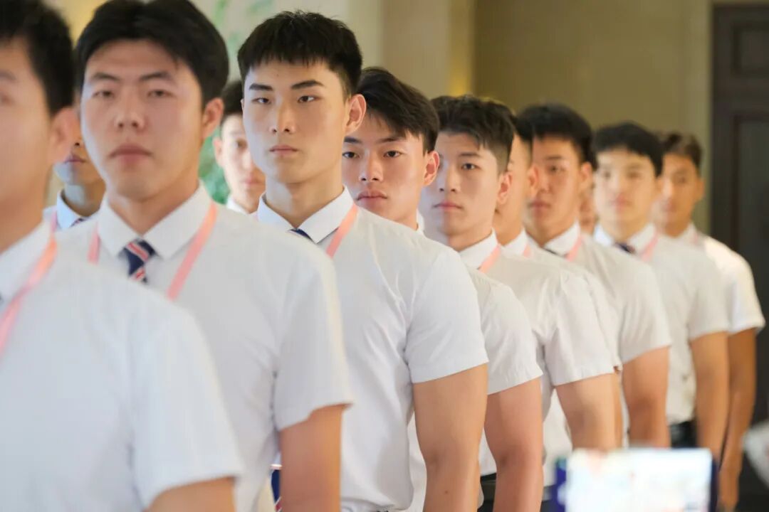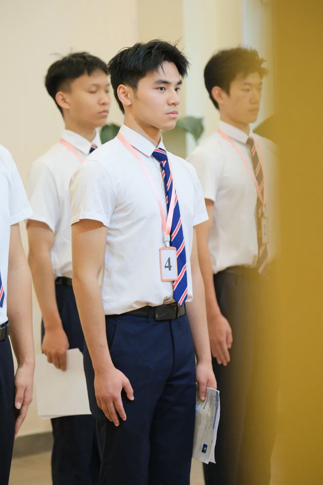 候场区,男生们西装笔挺,尽显干练与稳重;女生们则化着精致的妆容,盘起标准发髻,展现出准民航人应有的专业形象,眼中洋溢着满满的自信与为梦想冲刺前的沉静与专注。