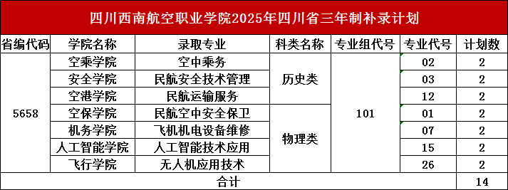 根据四川省教育考试院录取工作安排,专科层次补录时间为9月25日—26日。四川西南航空职业学院尚有补录名额,心仪西航的你赶快抓住最后机会,开启逐梦西航的青春新章……