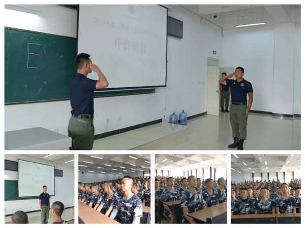 在开训动员大会上,学员们一起宣誓。团结一心,认真完成本次训练,为达到航空安全员的要求而努力奋斗。学员们每天经历着“魔鬼训练”,从早晨6:20到晚上22:00,时刻都对在自己“高标准,严要求”,从不畏惧、从不退缩。