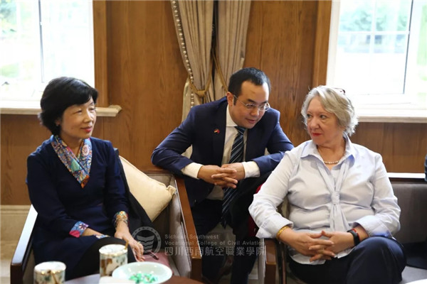 签约仪式开始前,德意志联邦共和国驻成都总领事馆副总领事Mrs. Ingrid Delfs和外国语学校肖瑾校长等一行人参观了学校,Mrs. Ingrid Delfs惊叹于学校的景色与宏伟,多次发出感叹,并称这是她在中国见过最美的大学,德国并没有规模如此之大的专业的民航职业院校。德国双元制职业教育蜚声世界,Mrs. Ingrid Delfs也是职业教育受益人之一,她表示今后会积极推进我院与德国各方有更多的合作与交流。