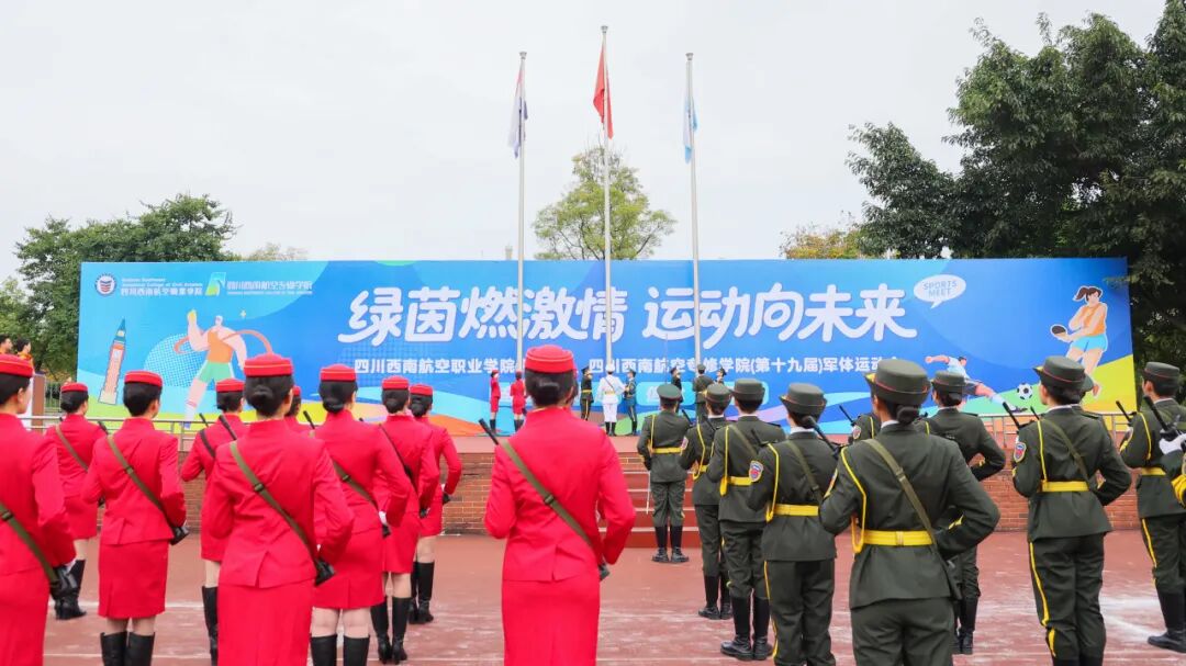 在全场期待的目光中,学院执行院长李玉龙宣布:"四川西南航空职业学院(第九届)、四川西南航空专修学院(第十九届)军体运动会正式开始!"这一刻,蓄势待发的激情被彻底点燃。掌声、欢呼声、呐喊声汇成一片!